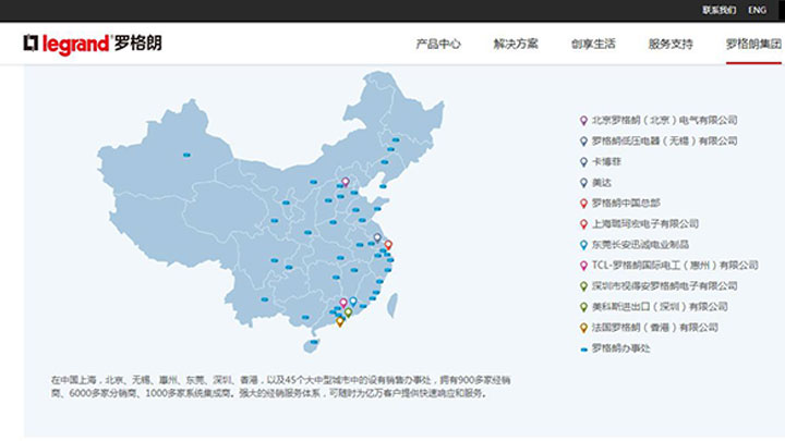 罗格朗是在全球超过90个国家和地区设有分公司和办事处。据官方统计,罗格朗目前在全球开关插座领域拥有高达19%的市场份额,其80多个产品类别,13万个产品型号正畅销于全球180多个国家 。罗格朗在1700种不同的系统和技术中享有3700项专利,98个产品类别中拥有230000种产品,其中开关插座(市场占有率20%)和线缆管理(市场占有率14%)方面处于世界领先地位。所有产品可用于住宅(2010年占总收入的42%)、商业(2010年占总收入的48%)、工业(2010年占总收入的10%)市场。2017年的全球营业额超过55亿欧元。近20年内,罗格朗在全球范围内进行了40多项收购。集团成长得如此成功,其策略是建立在对不同市场需求开发不同的产品,并且对于市场中的领导品牌进行收购。每年,罗格朗将销售额中的4-5%用于研发,60%的投资用于关键市场的新产品。