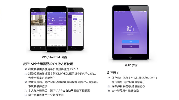简i是基于罗格朗MYHOME智能家居系统OPEN协议开发的软硬件产品集合。